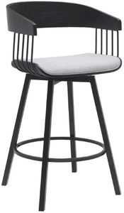 An enveloping silhouette and padded seat promise a comfortable sit in a kitchen or lounge. Our barstool is available in both faux leather and high-performance fabric to best suit the daily wear and tear of your home. Expertly crafted from metal and engineered wood, the counter stool shows off a mixed material elegance to work well anywhere from your kitchen to a home office. It can complement a kitchen island, pub table, home bar, or adjustable desk, bringing a dose of style and comfort. Our modern bar stool comes with a wonderful 360-degree swivel with a smooth gliding system, allowing you to join conversations around the counter or work with ease and efficiency. The Athena swivel bar or counter stool easily incorporates into any home and is available in your choice of 27-inch or 31-inch seat height in a walnut wood finish with black, cream, and gray faux leather upholstery or a black wood finish with your choice of light gray or blue fabric or gray faux leather upholstery.