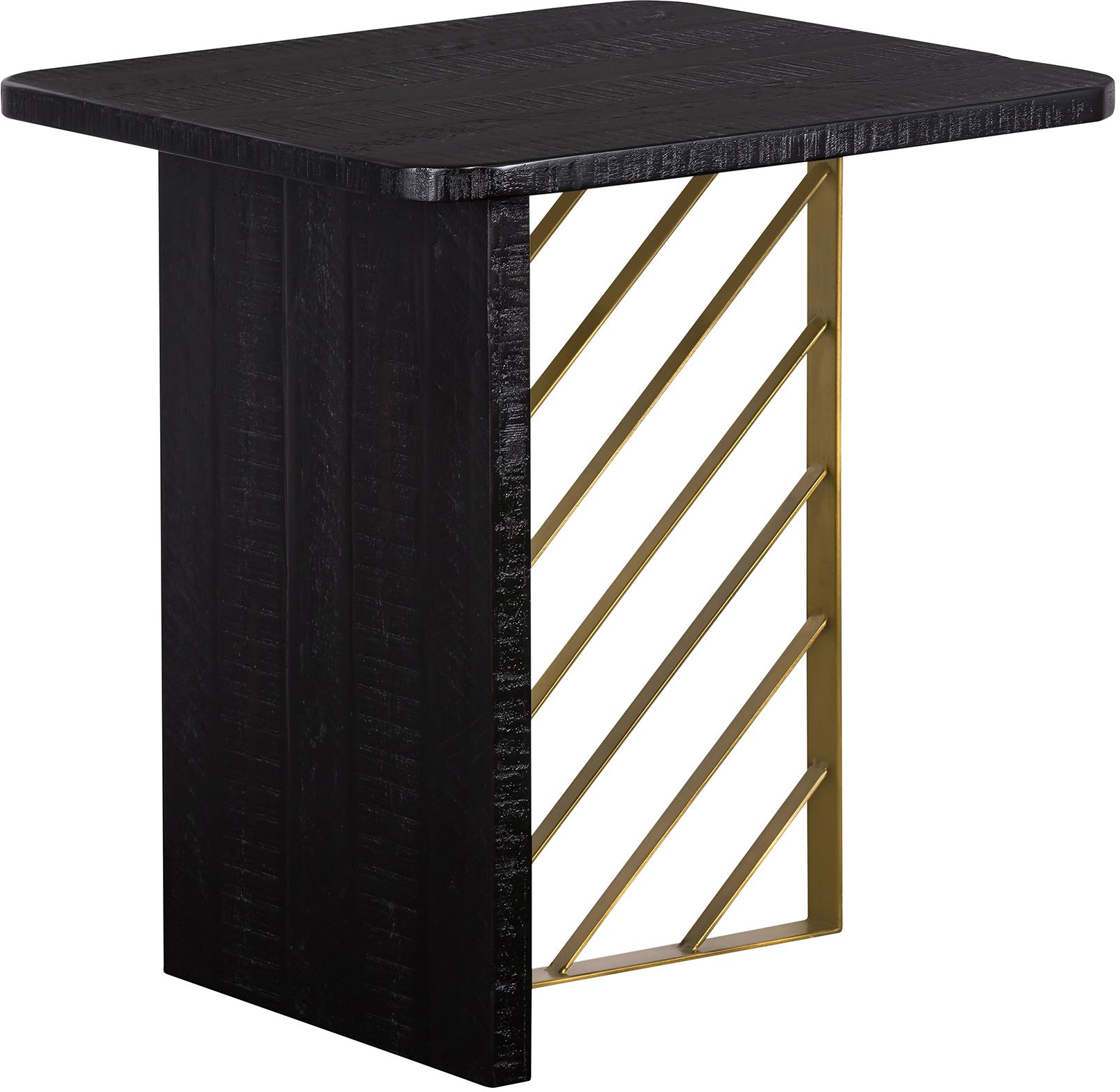 Accent your home with the Armen Living Monaco Black Wood Side Table with Antique Brass Accent. This beautiful side table featured a T-shape base with antique gold diagonal lines design accompanied with acacia wood to ensure stability of the product.Read More