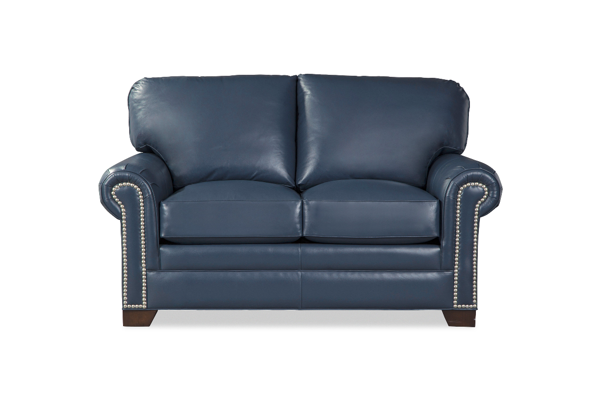Casual sophistication comes to life in this updated classic leather loveseat. Nail heads trim the arm panels and accent the pleated rolled arms- set at the perfect height for a good nap! Three plush Blend Down Coil seat cushions and three attached backs provide a plush, comfortable place to relax.Read More
