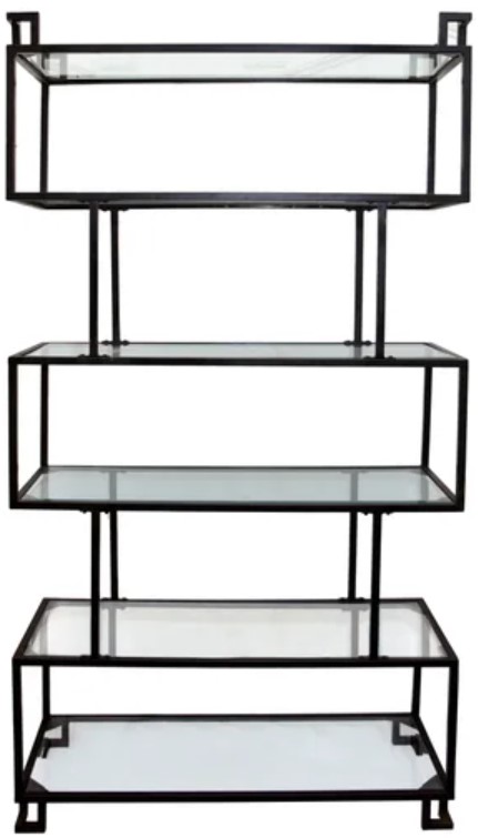 The Belvedere etagere presents a uniquely designed iron structure with glass shelves. This etagere has an open back and 5 sectioned shelves for storage and organizing needs in your living space. This etagere stands at 82 inches high.Read More