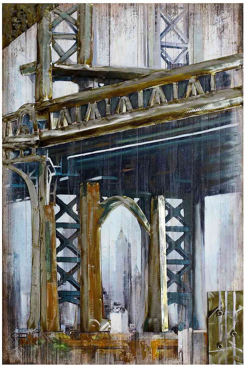 Handpainted wooden wall art with metal accents 32x1.5x48.