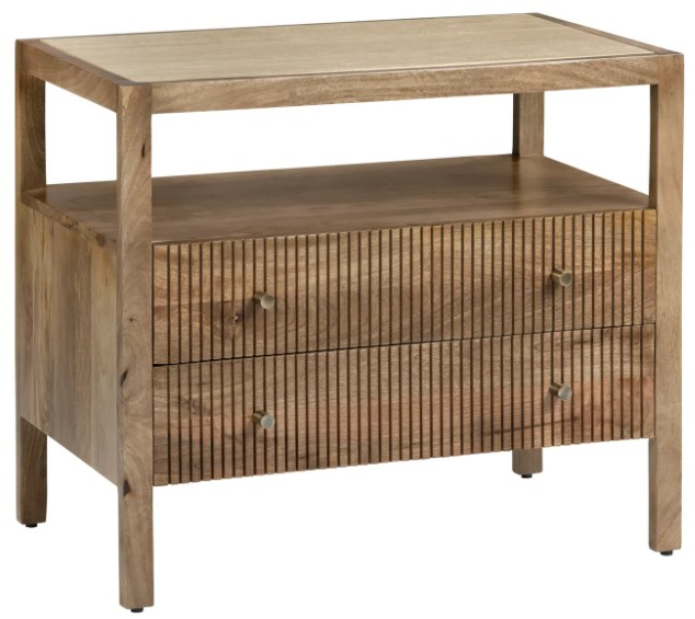 Introducing the Mason bedside table, in a warm brown wood finish, transitional design featuring two drawers with one slightly smaller on top, straightforward legs, and clean lines—versatile for rustic, farmhouse, or casual interiors.Read More