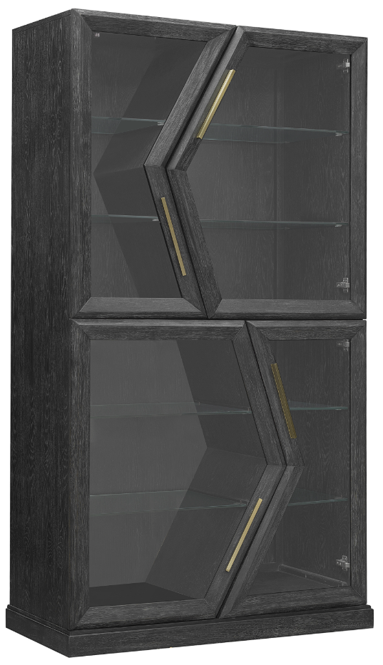Create a striking, modern statement with our Drew & Jonathan Heritage 4-Door Curio. The door frames showcase an asymmetrical design that offers a dynamic, unbalanced look and are accented with sleek, gold-finished hardware, offering a touch of luxury and sophistication.Read More