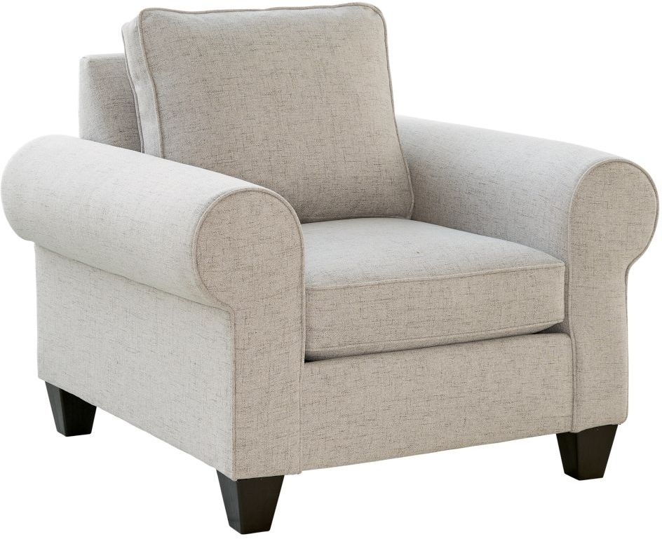 This accent chair will provide your home with a beautiful spot to lounge, perfect for settling down with a book or your favorite coffee mug. Complemented by rolled arms and dark wooden feet, this seat provides comfort and neutral upholstery that will effortlessly blend into your living space.Read More