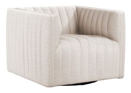 A modern take on the classic library chair, crisp linen-blend upholstery features dramatic channeling, for trend-forward texture and sumptuous sit. A 360-degree swivel delivers appeal from every angle. The swivel functions to maintain the directionality and continuity of line or chain tension while allowing twisting motions.Read More