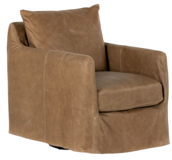 A modern take on the 360-degree swivel chair is small in scale and big in comfort. Luxuriously slipcovered in tan top-grain leather with a plump, pronounced grain. And this will be a great fit into our home.Read More