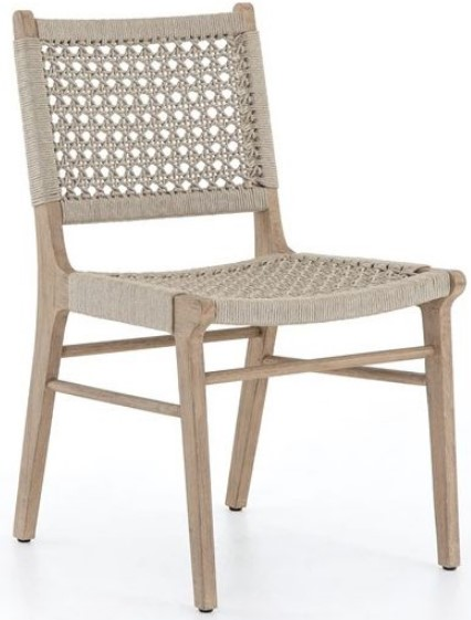 Incorporate this simple yet elegant Delmar Outdoor Dining Chair from Four Hands into your home. Simply stylish, indoors or out. Washed brown teak frames woven ivory rope, making a texture-driven statement. Cover or store inside during inclement weather and when not in use.Read More