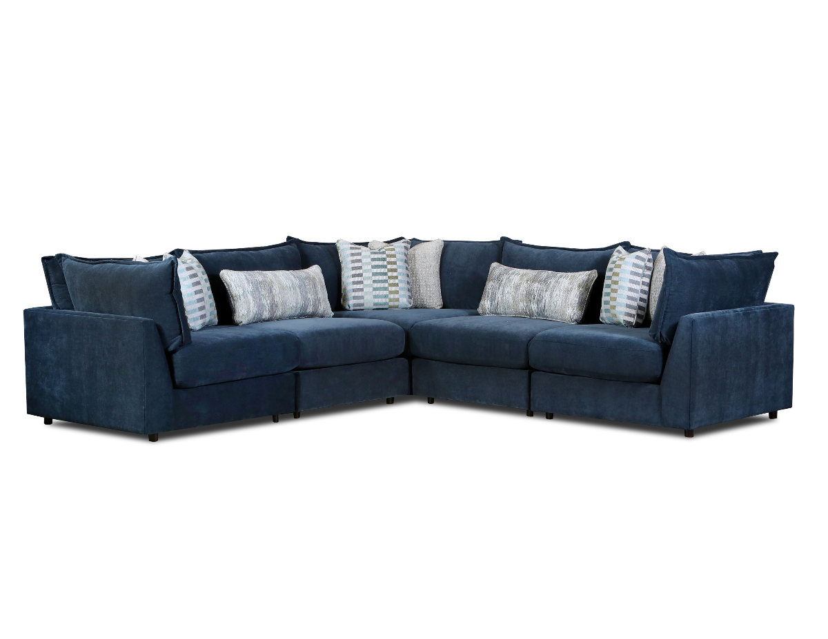 The armless chairs can also be moved to any side you prefer or grouped together. It allows for complete flexibility within a room, when moving or for when you just want to mix up your room with a new look. With loose, reversible seat and back cushions and transitional design Marquis Midnight is a modern design in a transitional pattern of covers. It comes with 3 pairs of contrasting pillows and five contrasting kidney pillows. The Marquis Midnight Sectional is part of our Luxe Living Collection which features fully framed and upholstered outside arms and outside backs, a 1.8 density foam core seat cushion wrapped with HR high resiliency cool gel top and bottom with plush dacron fiber. Luxe Living also features 11 inch thick seat cushions that are zippered, loose and reversible. All back cushions are also loose, zippered and reversible filled with bagged and channeled fiber for softness and comfort. We also complete thorough testing of the seat cores to ensure comfort, consistency and durability.