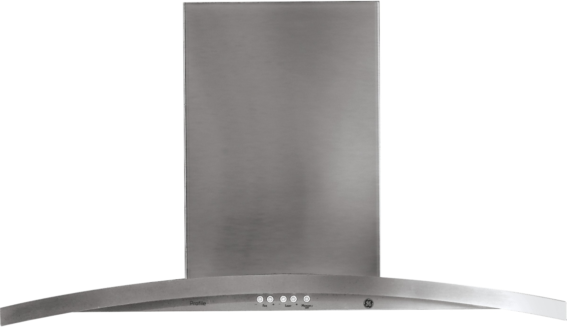 GE® 36" Stainless Steel Island Range Hood features a 430-CFM venting system, push-button controls, variable speed fan control, vertical exhaust, LED cooktop lights, night light, and a dishwasher safe filter.Read More