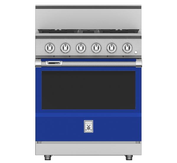 The Hestan 30” dual fuel range marries high-performance gas burners with a precision electric convection oven. Our dual-flow burner system allows for a robust range of heat control, from a searing 23,000 BTU flame to a continuous gentle simmer of 500 BTUs. The oven is dialed in with exclusive PureVection™ technology, which automatically optimizes heat and airflow for perfectly balanced convection baking, broiling and roasting. The MarquiseDisplay™ gives you a chef-friendly digital display – conveniently inset right in the commercial-grade oven handle.Read More