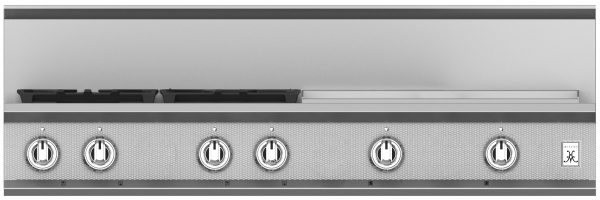The 48” Hestan rangetop with griddle delivers searing culinary power with a sealed burner system delivering exceptional temperature control for culinary power up to 23,000 BTUs and as low as 500 BTUs. The 24” commercial-grade stainless steel gas griddle makes breakfast a cinch with superior heating and a thermostat for precise temperature control, while the continuous grates and backlit knobs combine stunning form and function.Read More