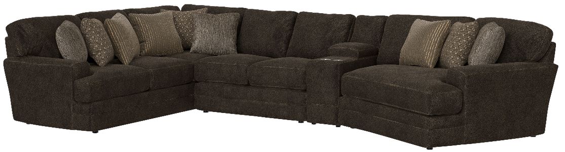 4pc sectional includes left arm corner sofa, armless loveseat, storage console and right arm piano wedge/cuddler