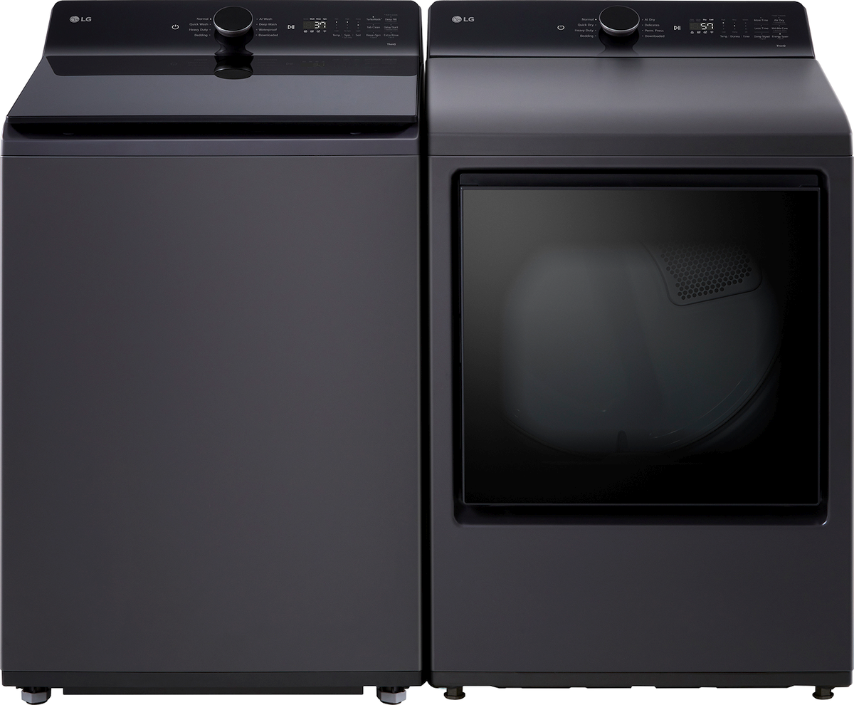 LG Matte Black Laundry Pair with 5.3 cu. ft. capacity top load washer and 7.3 cu. ft. front load gas dryer.Read More