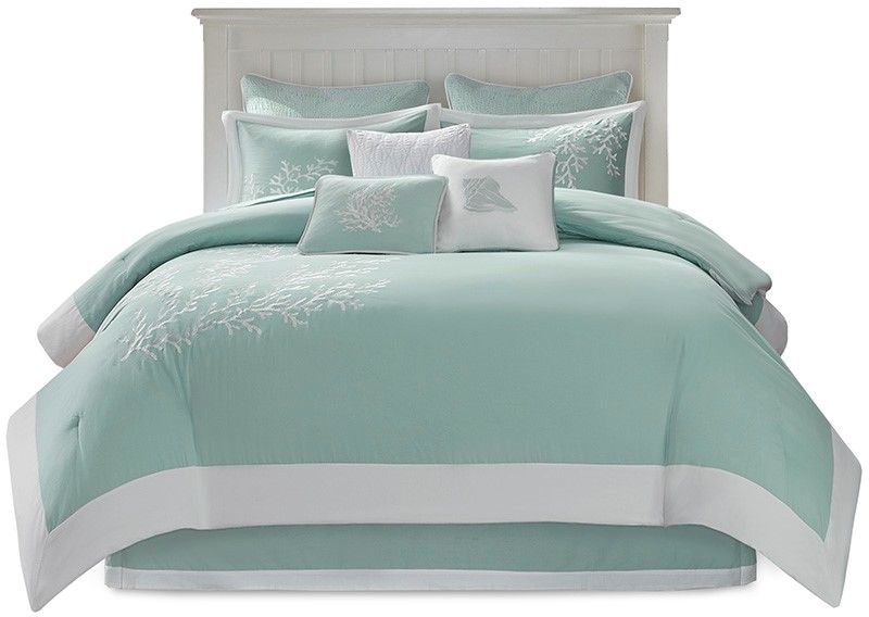 Bring a bit of seaside inspiration into your home with this beautiful bedding collection. The Coastline collection has an intricate coral motif embroidered on a soft 100% cotton pique. The coordinating sheet set has beautiful shell motifs embroidered along the cuff of the flat sheet and pillowcases. This bed is sure to bring a sense of comfort and relaxation to your room.