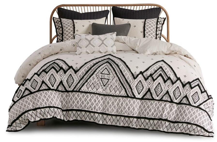 Create a modern-boho eclectic look in your bedroom with the INK+IVY Marta 3 Piece Cotton Comforter Set. The natural-hued cotton and flax linen comforter and shams features a black diamond print with black chenille textured trim that adds dimension and creates a globally inspired look.Read More