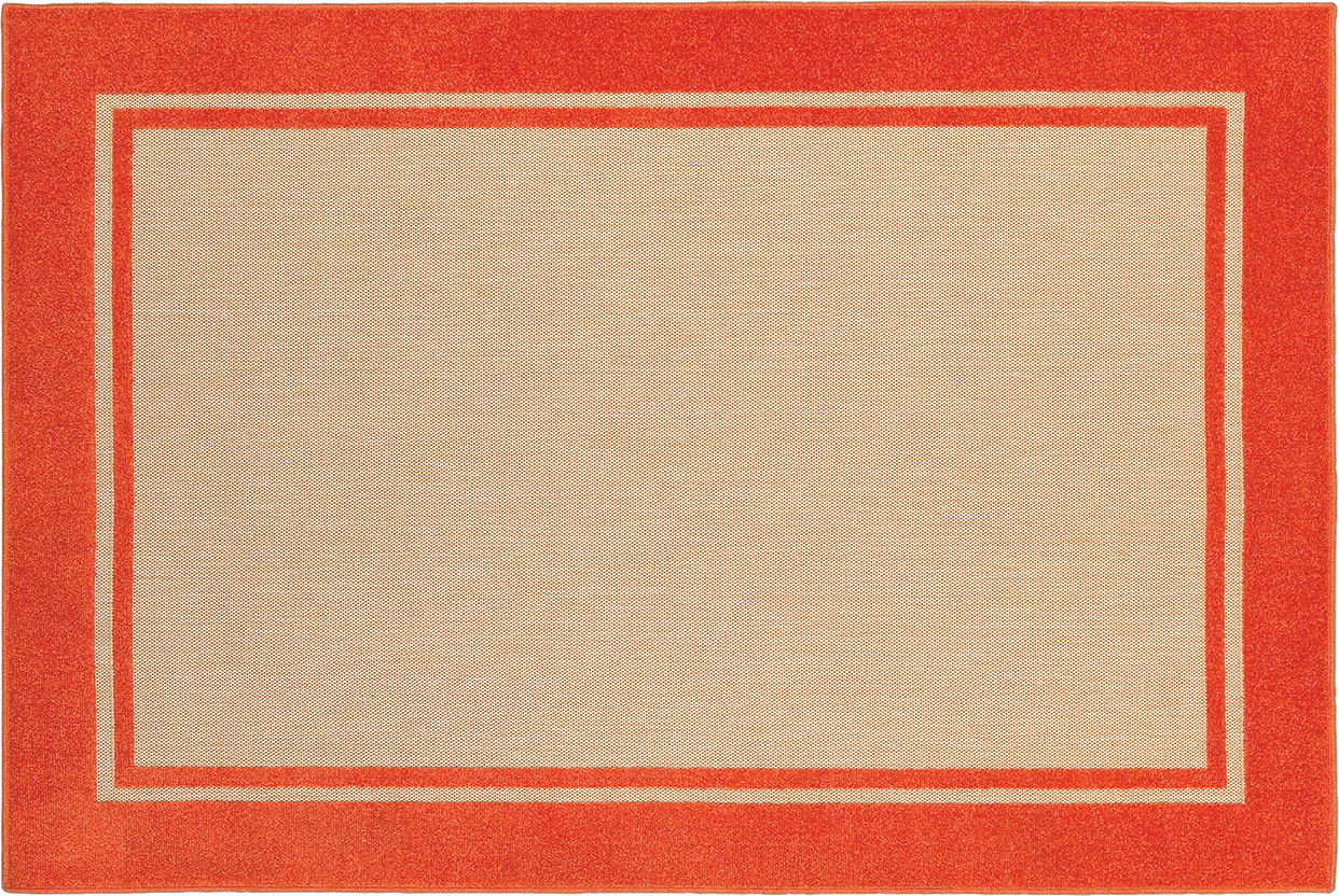 The Cayman collection is machine woven of 100% polypropylene featuring a high/low effect utilizing textured, tri-colored yarn in a multi-level cut pile and flat weave construction that can be used inside the home as well as outdoors. Vibrant shades of tangerine, lime Mediterranean blue, cherry red, charcoal and bright strawberry pink pop on the natural sand colored background in crisp geometric and global inspired patterns.