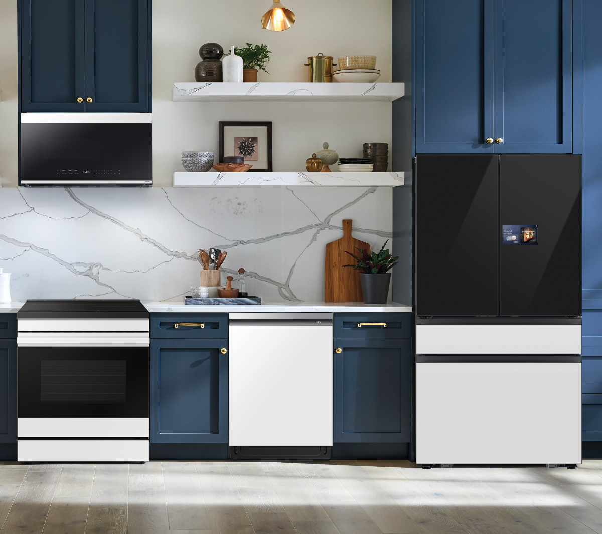 Personalize your Bespoke 4-Door French Door Refrigerator with customizable and changeable freezer door panels. Choose from a range of colors and either steel or glass finishes, to design a refrigerator that expresses your personal style.