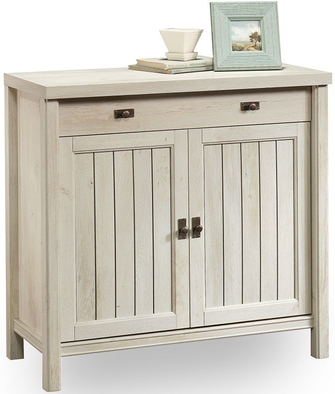 Transform your home into a cottage-inspired retreat with this library base from the Costa collection. This beautiful cabinet features a durable, 1” thick table top with a spacious surface to display all your around home décor – an accent lamp, photos of family and friends, and a jar of seashells. Its large drawer opens and closes on smooth metal runners, making it perfect for easy access storage of small office supplies and clutter. Behind its double doors is a hidden storage area that includes a spacious adjustable shelf for convenient storage and organization. The frame and panel doors feature slat-front detailing to give this cabinet its unique coastal vibe. This library base adds beautiful style and desired functionality to any room in your home – dining room, office, living room, or even the bedroom! Finished in Chalked Chestnut and accented with brass hardware, this stunning cabinet is the solution to all your storage woes.