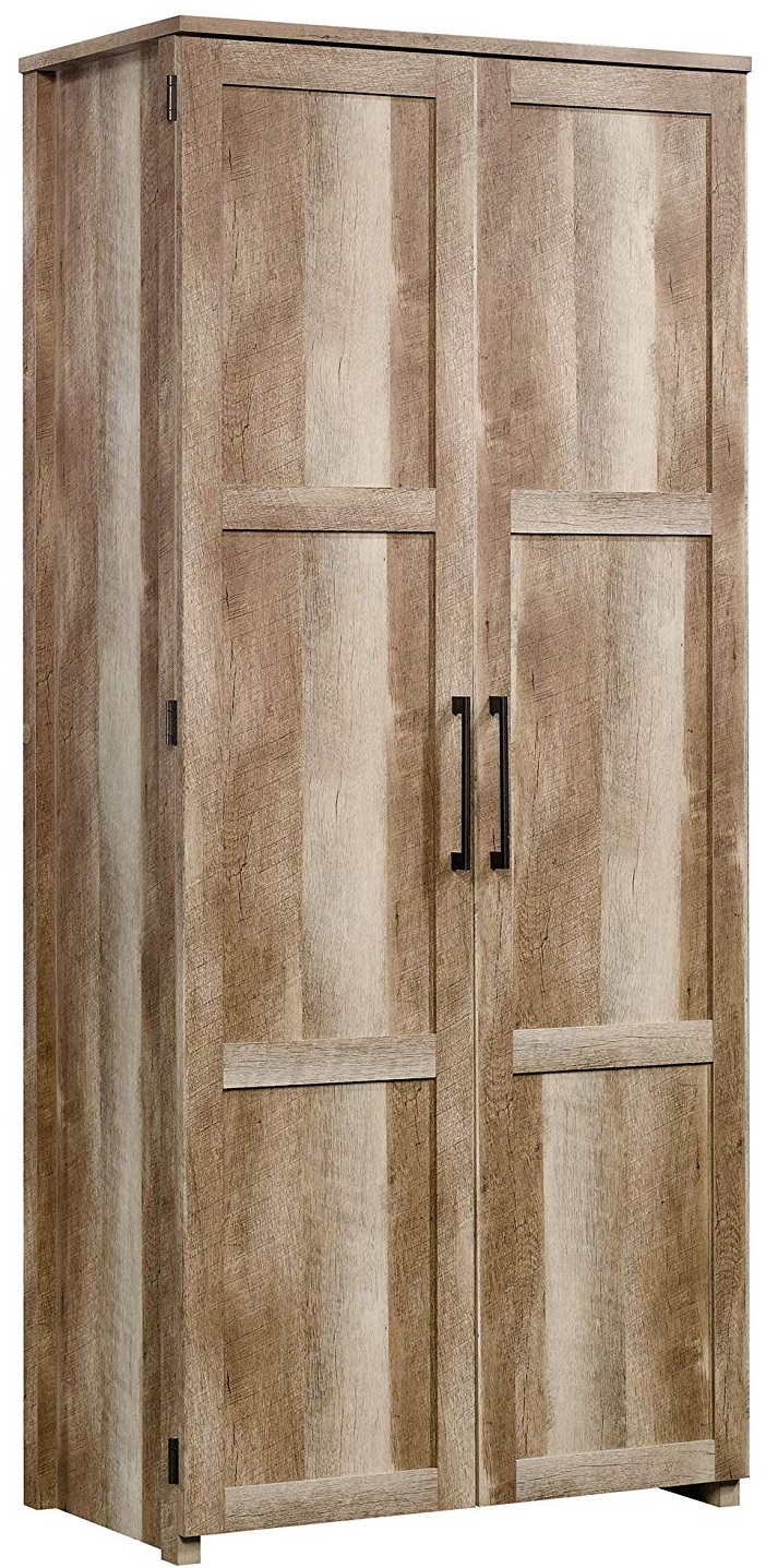 Too much stuff and not enough space to store it all? Sounds like a problem that we can fix! Give your home the storage options it needs while adding the beautiful style that you want with this storage cabinet from the HomePlus collection. Behind its large, framed panel doors is a spacious hidden storage area that provides you with all the room you need for all your miscellaneous storage needs. It includes four fixed shelves that are ideal for storing and organizing an array of different items like canned goods, crafting supplies, spare bed sheets or gardening tools. You can find a space for all your things! Its beautiful good looks and simple design make it a perfect fit for just about any space in your home – the kitchen, your office, the entertainment room or even in the garage. Finished in Lintel Oak and detailed with attractive hardware, this good-looking cabinet is the solution to your storage woes.