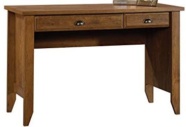 Computer desk made of wood with two drawer. Handle are pull. Computer desk also come with 5 year limited warranty.