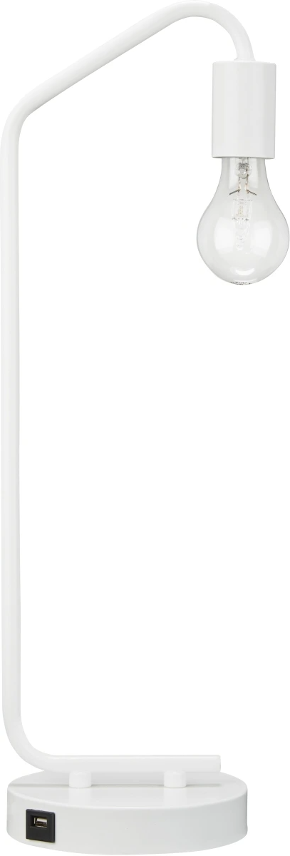 Brilliant in its minimalist form, this desk lamp suspends its exposed bulb in one sleek swoop. Constructed of metal, the compact, lightweight lamp is portable and features a single USB charging port. We see it glowing bedside, on a bookshelf or on either end of a credenza.Read More