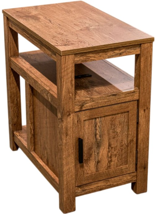 Each chairside table features a door cabinet for keeping smaller items close at hand, open display shelf and a dual USB-A/USB-C charging port to keep your devices charging at arms reach