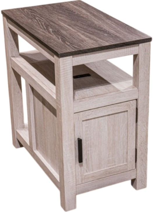 Each chairside table features a door cabinet for keeping smaller items close at hand, open display shelf and a dual USB-A/USB-C charging port to keep your devices charging at arms reach