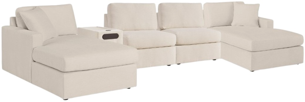 Includes 5 Modular Pieces: Left-arm facing corner chaise, console with audio system, right-arm facing corner chaise and 2 armless chairs