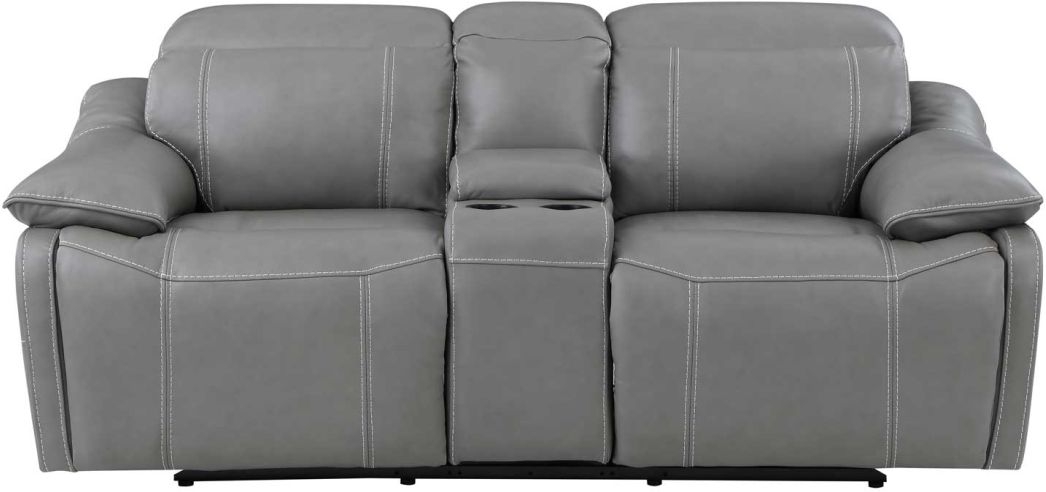 Euro-styled reclining console koveseat with sleek style and clean lines. The Alpine is covered in decadently soft leather fronts with power headrest and power footrest functionality. The headrest lays flat when closed for a look that does not scream recliner and the gray cover blends with virtually any decor.Read More